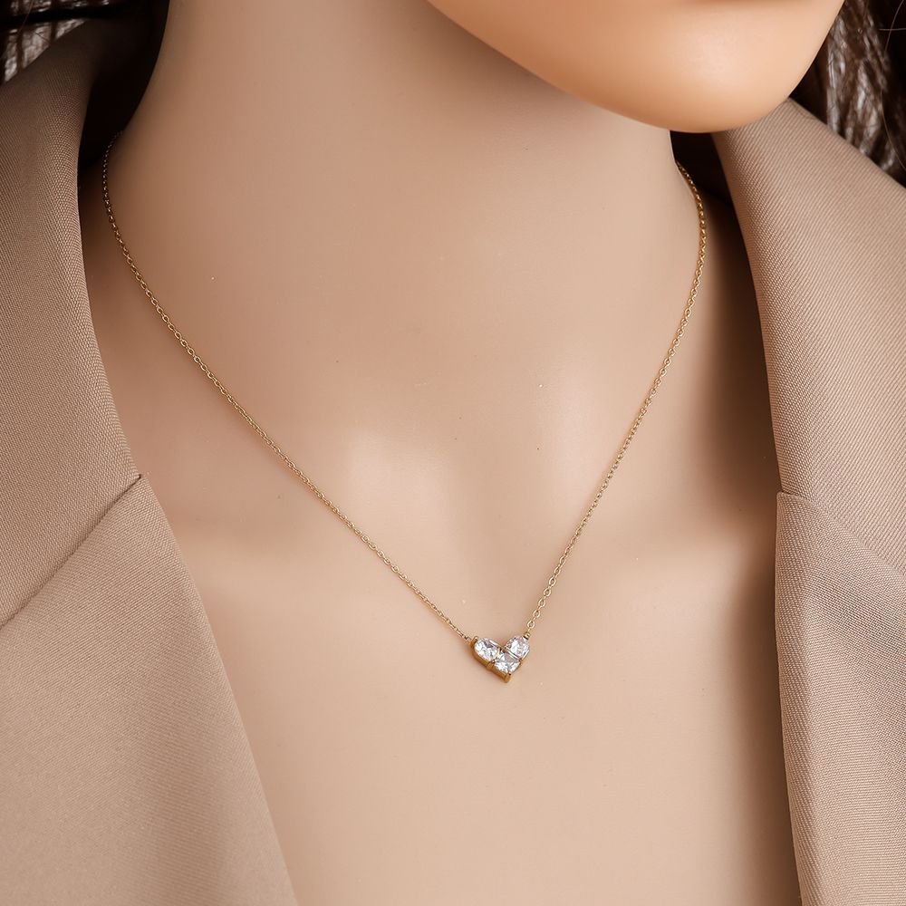 Elegant 40 cm heart-shaped necklace made of durable stainless steel, adorned with shimmering zirconia stones. Features gold or silver plating and a 5 cm extension for a perfect fit.